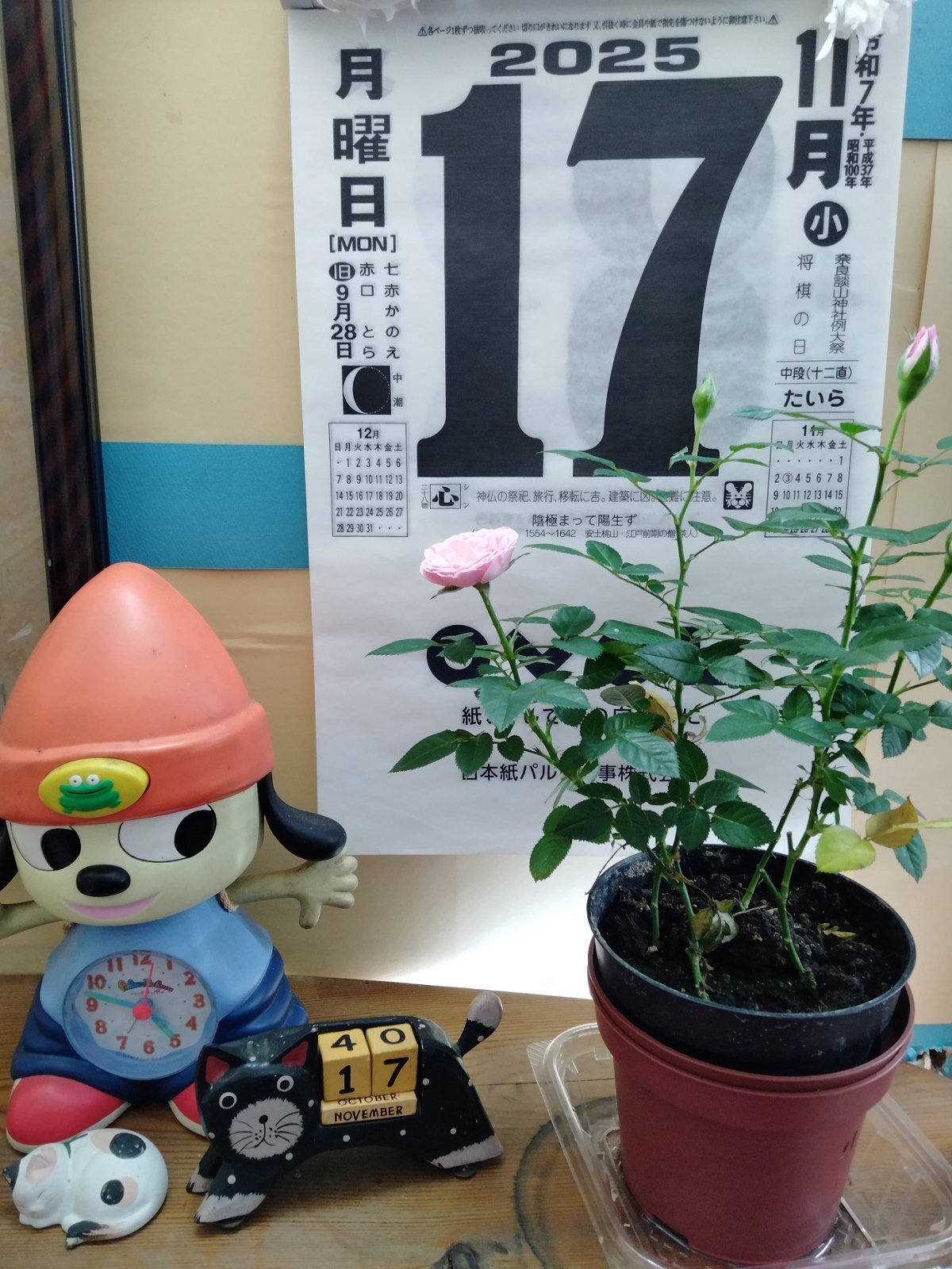◎ミニ薔薇が咲きました~~今日11月17日の海文舎の無人ガレージ店⇔目覚まし時計