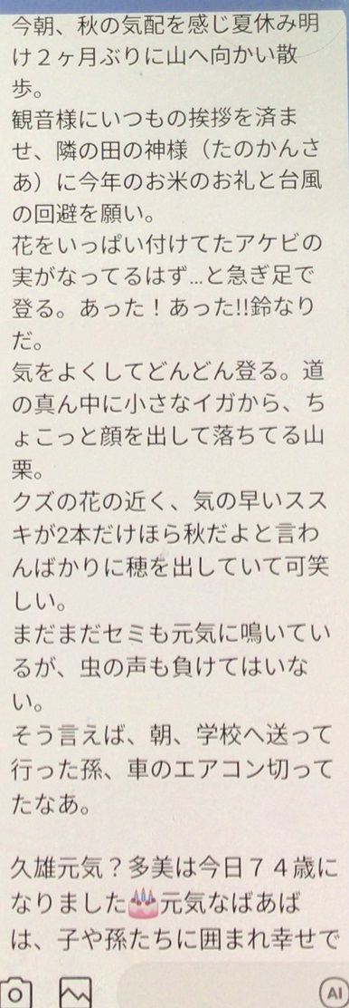 そうだ!山に行ってるに違いないと呟き、一人で安心してます。