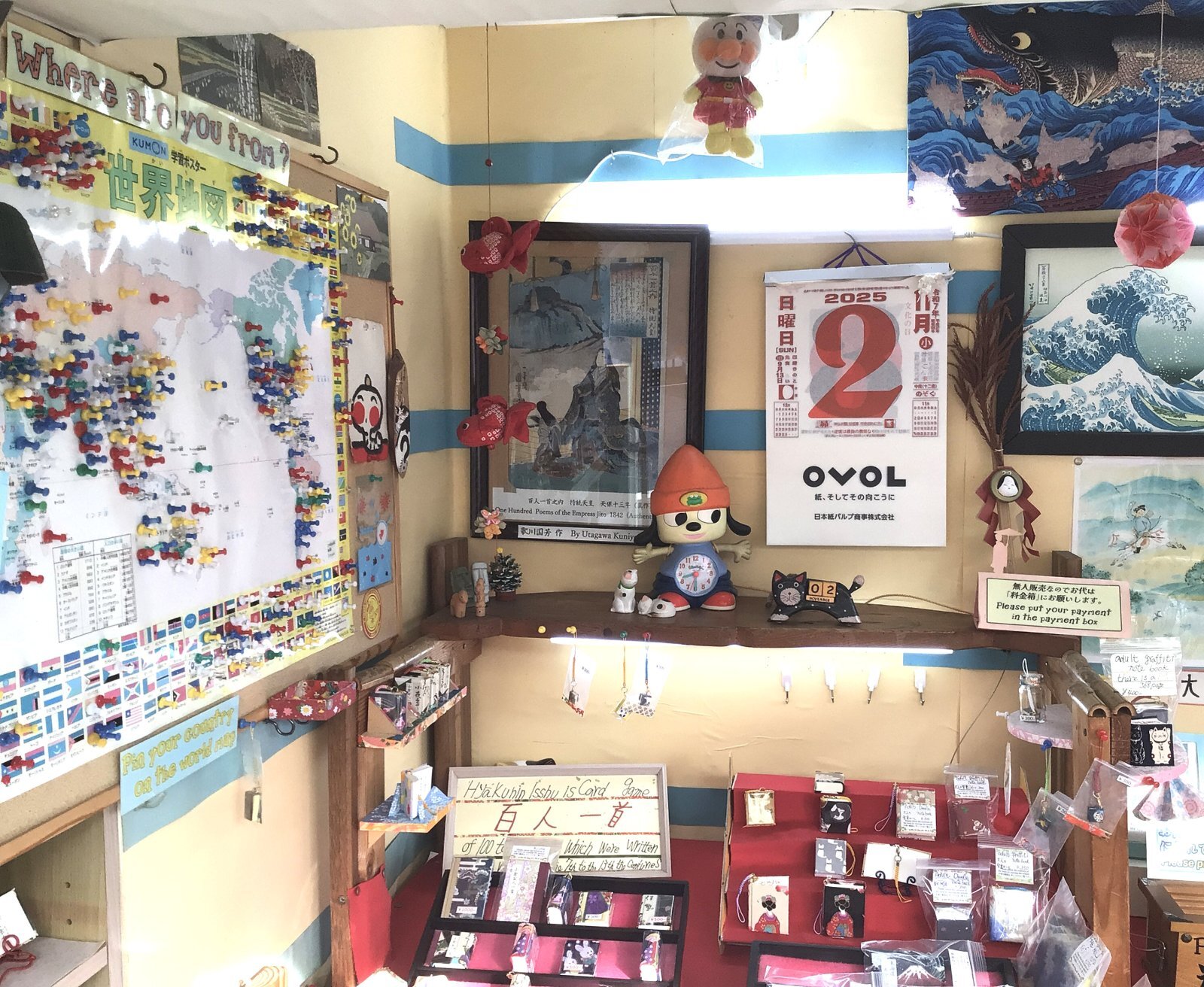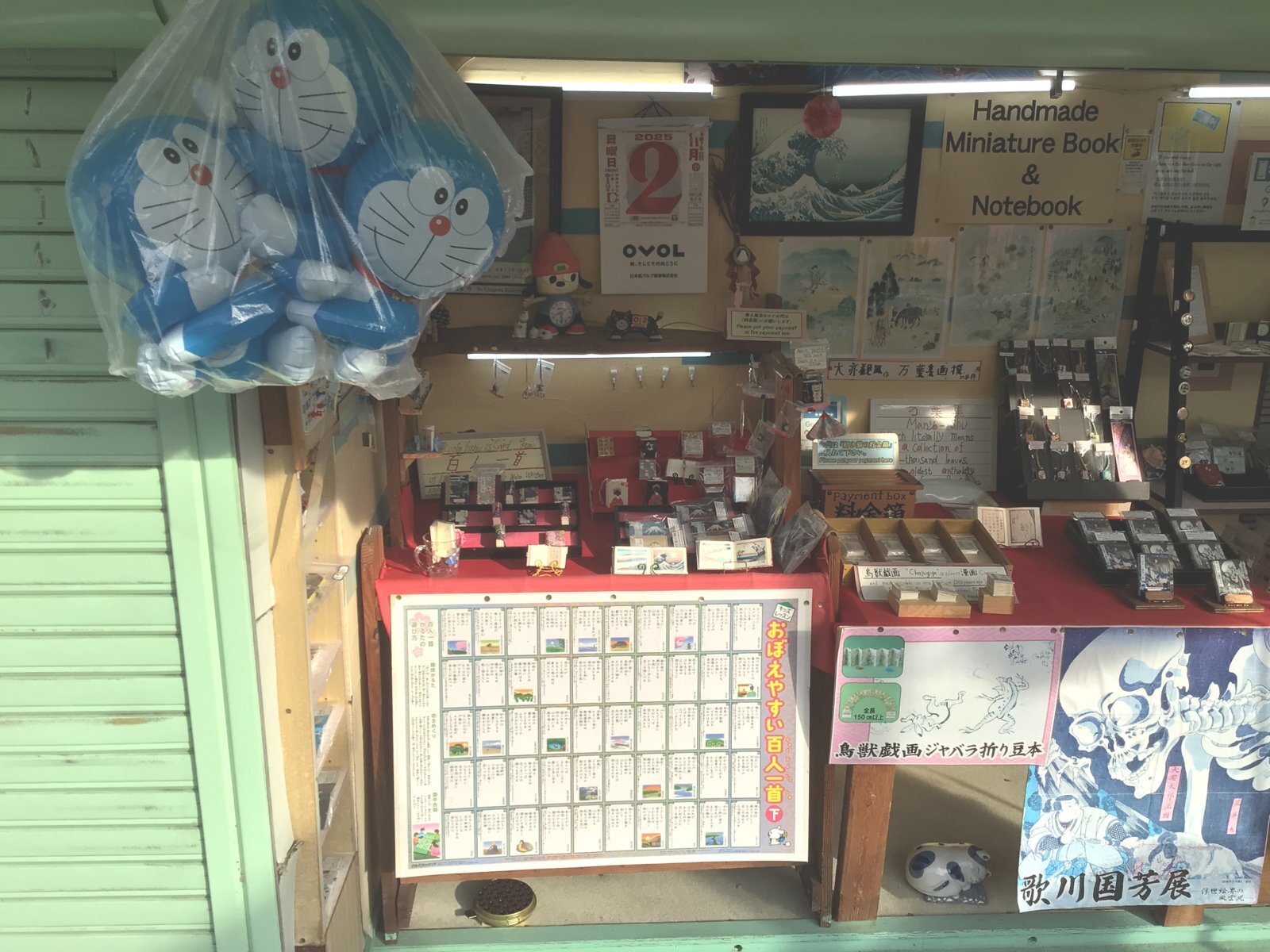 店長のお散歩日記 ◎『小倉百人一首』豆本⇔お買い得日です!京都・海文舎の無人ガレージ豆本売り場 2025年11月02日 朝日が当たって画像が暗いですが、今日は「小倉百人一首」豆本を中心に置きました。日曜日です。 お客様がは「ドジャース」の勝ち試合が終わってからな? どらえもんも応援してます。