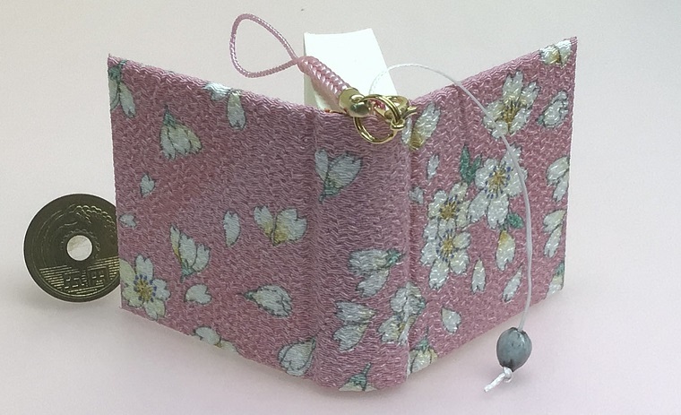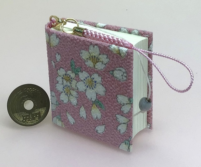 上製本仕上げです。表紙に張ってる布地は、桜柄のちりめん(化繊)です。