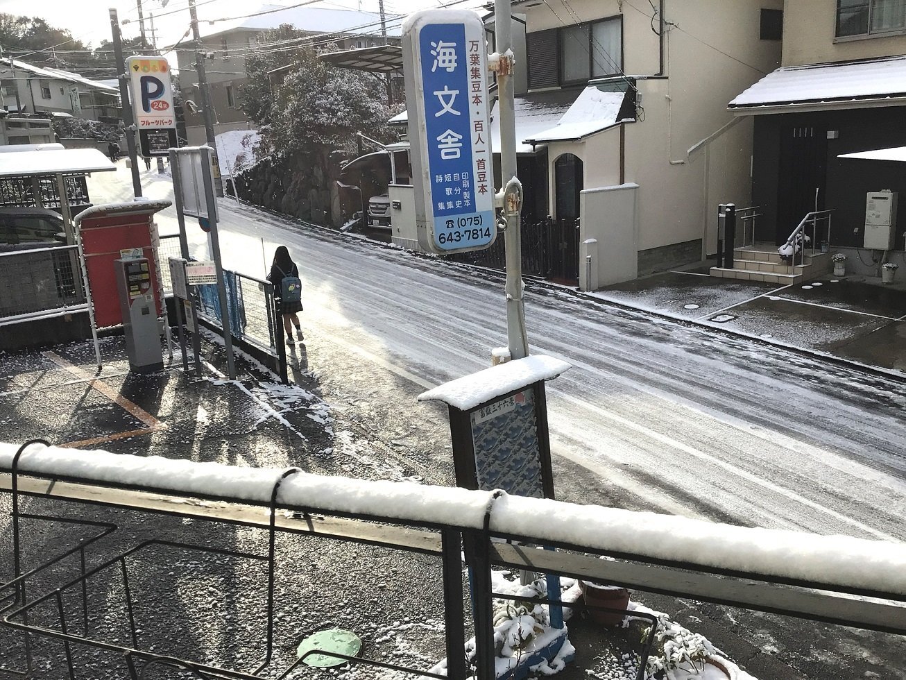 近くの高校の生徒たちが、いつもと変わらぬ姿で通学してる。