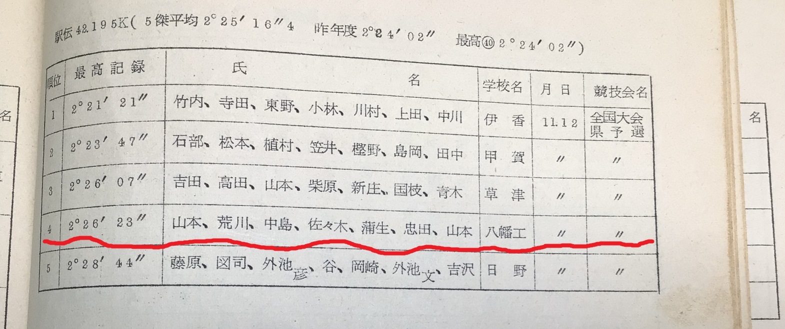 ↑ ↑ ↑ この記録は半世紀前の、私が高校1年の時の滋賀県の駅伝記録です。