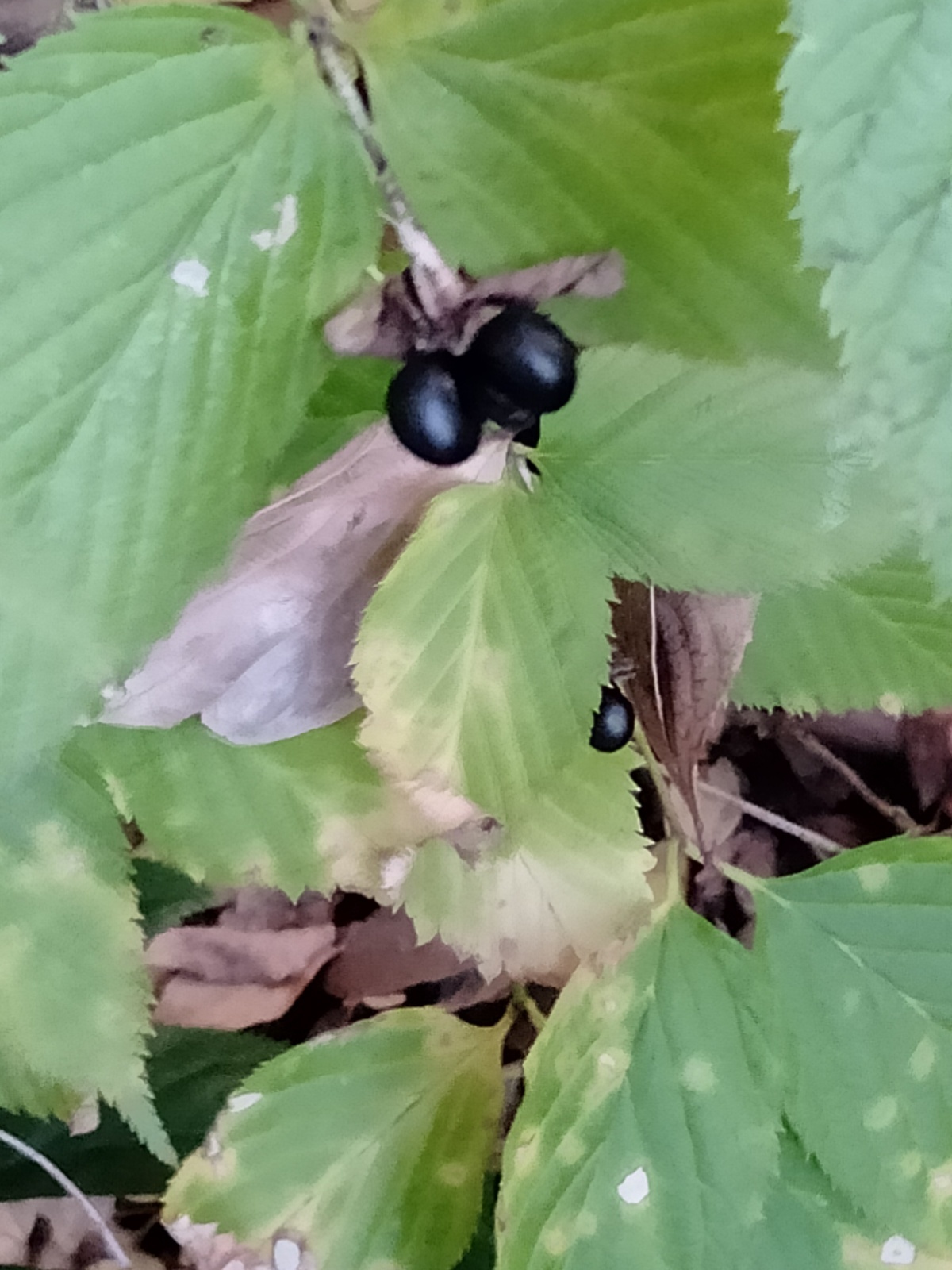 帰り道で山吹の実を見つけました。ナンジャモンジャの実と同じ色形です。