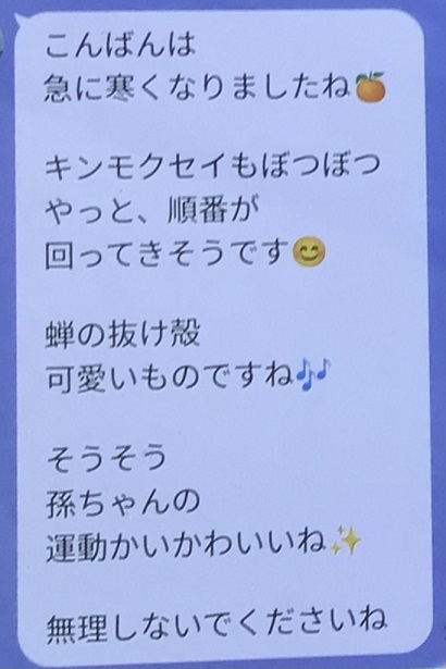 店長のお散歩日記 ◎国東半島⇔姉さん便り~~空蝉と金木犀~~ 2025年10月27日 国東半島では金木犀が咲き出したようですね。 わが家の近くは、まだ気配がありません。 昨日行った近江でも金木犀の香はしませんでした。