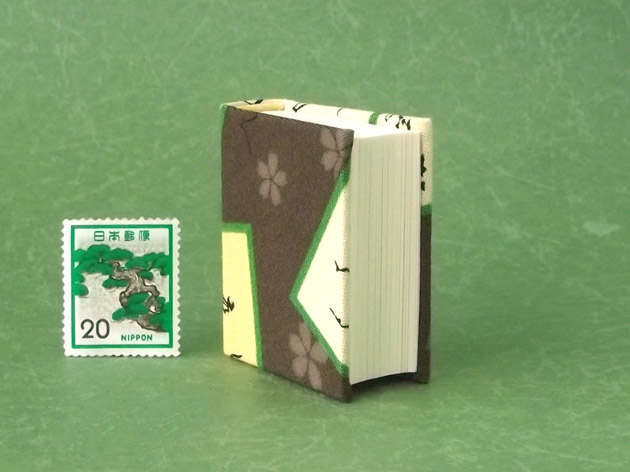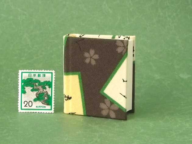ミニサイズ(4.5cm×4cm)の手作り小倉百人一首豆本【丸背】です。